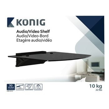 Deze audio/videoplank van König kan een maximaal gewicht van 10 kg houden. De afmetingen van de plank zijn 400x311.5x70 mm. Door het getemperd glas heeft u de perfecte afwerking voor uw AV-apperatuur en heeft u gegarandeert een stevige en veilige installatie.. Door de meegeleverde montage-instructies en benodigde materialen is de installatie van de audio/video plank gemakkelijk.