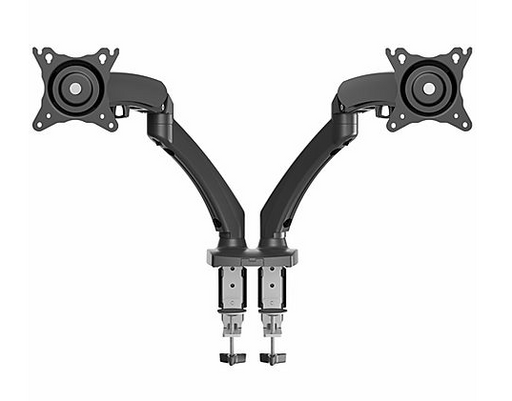 Dubbele monitorarm met gasveer voor schermen tot 29 inch. Deze monitor arm van Barkan heeft een extra sterke gasveer om het gewicht van de 2 monito...