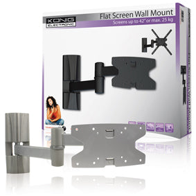 Alle gegevens bekijkenKönig 3-weg tv muurbeugel tot 42 inch Zilver Universele muursteun voor LCD en Plasma TV’s van 20” tot 42” of maximaal 25 kg. Dankzij een draa...