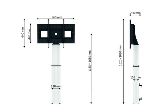 Alle gegevens bekijkenErvaar de Wolff Mount TVB-136: het elektrisch in hoogte verstelbare presentatie meubel voor schermen tot 90 inch. Deze verrijdbare tv standaard com...