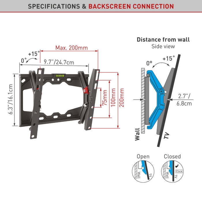 Barkan Mounts Compacte kantelbare muurbeugel voor schermen tot 43 inch |VESA 200x200