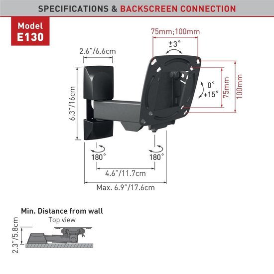 Barkan Mounts Compacte TV Beugel voor kleine schermen |13-29 inch |Full Motion |Gaming |Afstand 5.8 cm - 17.6 cm