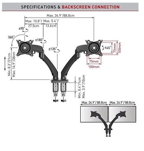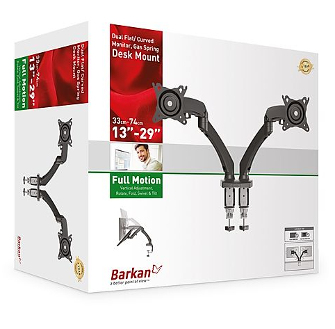 Barkan Mounts Dubbele monitor arm met bureaubevestiging |tot 29 inch |2 schermen |Gasveer