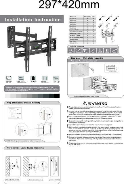 Combi-pakket tv wandbeugel voor schermen tot 50 inch