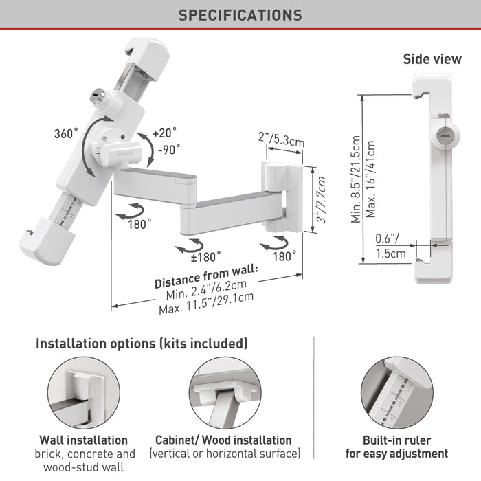 Full Motion Anti-diefstal tablet muurbeugel met SLOT 7"-14"