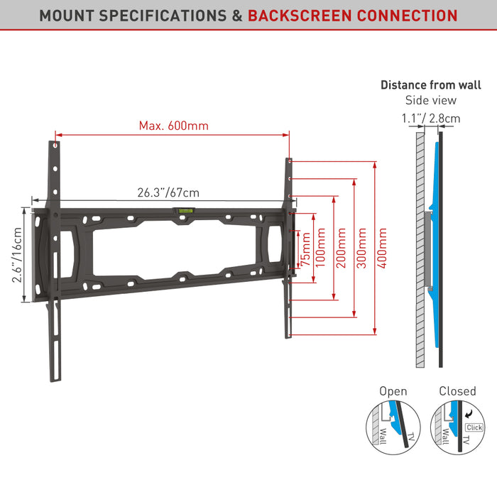 Super goede TV muurbeugel voor een betaalbare prijs, met deze beugel bent u snel klaar! De beugel kan schermen dragen tot 90 inch en 60KG. De beugel is slechts 2.8cm dik, hierdoor is een strakke montage gegarandeerd. Let nog wel even op de VESA maat,