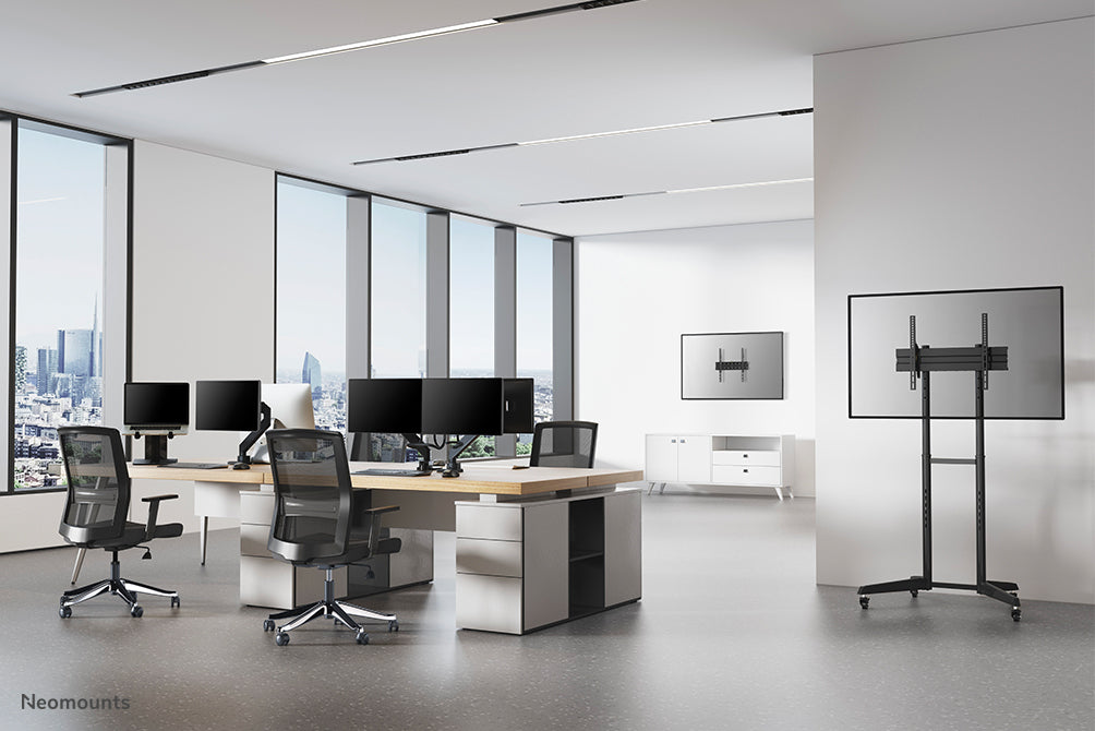 Neomounts NM-D775DX zwart is een gasgeveerde bureausteun met crossbar en hendel voor flat screens t/m 32 inch (81 cm).