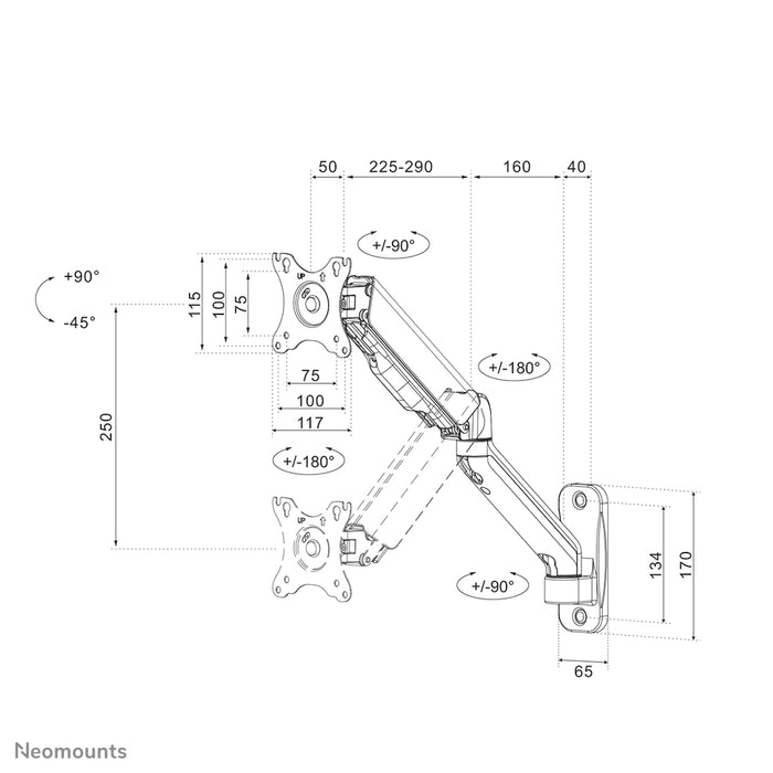 Neomounts WL70-450BL11 full motion wandsteun voor 17-32 inch schermen - Zwart