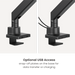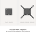 Voor extra flexibiliteit worden VESA-adapters meegeleverd, waardoor de arm compatibel is met diverse VESA-patronen. Dit maakt hem onder andere geschikt voor grote schermen zoals de Samsung Odyssey Ark 55”. Daarnaast zorgen de handige quick-release VESA-plaat en de montage via de bovenzijde van het bureau voor een snelle en eenvoudige installatie.