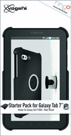 De holder voor Galaxy Tab 7" sluit naadloos aan op de behuizing van Samsungs handzame tablet. De holder maakt het mogelijk om de Tab te gebruiken met alle Ringo-mounts. Hang de Tab eenvoudig in de woonkamer, badkamer of studeerkamer, of gebruik hem onderweg in de auto om films af te spelen voor de kinderen. Monteer de holder op de Galaxy Tab 7" en hij voorziet de tablet van extra stevigheid terwijl alle functies van de Tab intact blijven. De camera, de volumeknoppen en connector zijn allemaal even toegankelijk als daarvoor. De Wall Mount van Vogel’s is onderdeel van het RingO System. Het is een subtiel en fraai vormgegeven knop die op vrijwel elk oppervlak vastgeschroefd kan worden. Een tablet met Holder klikt eenvoudig vast aan de Wall Mount, zodat hij veilig op zijn plek hangt, klaar om films of foto’s te bekijken of te gebruiken voor andere toepassingen. Gemonteerd kan de Tab 360 graden gedraaid worden, terwijl het kliksysteem zorgt voor een stevige en stabiele ophanging. En net zo eenvoudig is je tablet weer te demonteren.
