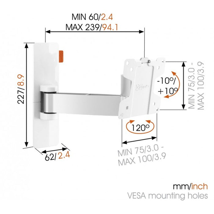 Vogels WALL 2025 Draaibare tv muurbeugel wit tot 26 inch