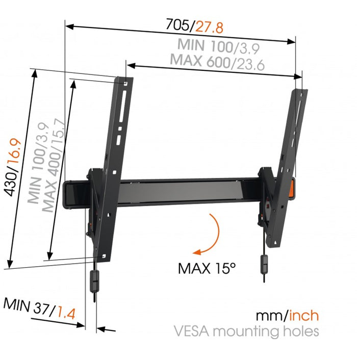 Vogel's WALL 2315 kantelbare muurbeugel voor schermen tot 65 inch