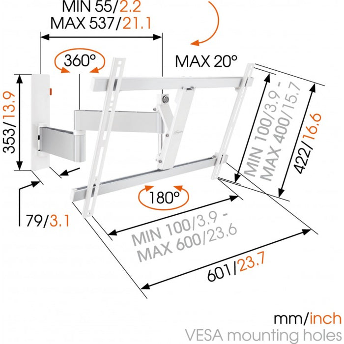 Vogel's WALL 2345 draaibare muurbeugel voor schermen tot 65 inch wit
