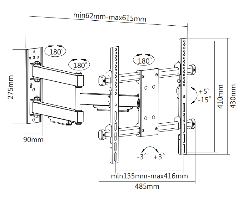 Wolff Mount Draaibare muurbeugel voor Philips |Universeel | 34-55 inch | | 10 jaar garantie
