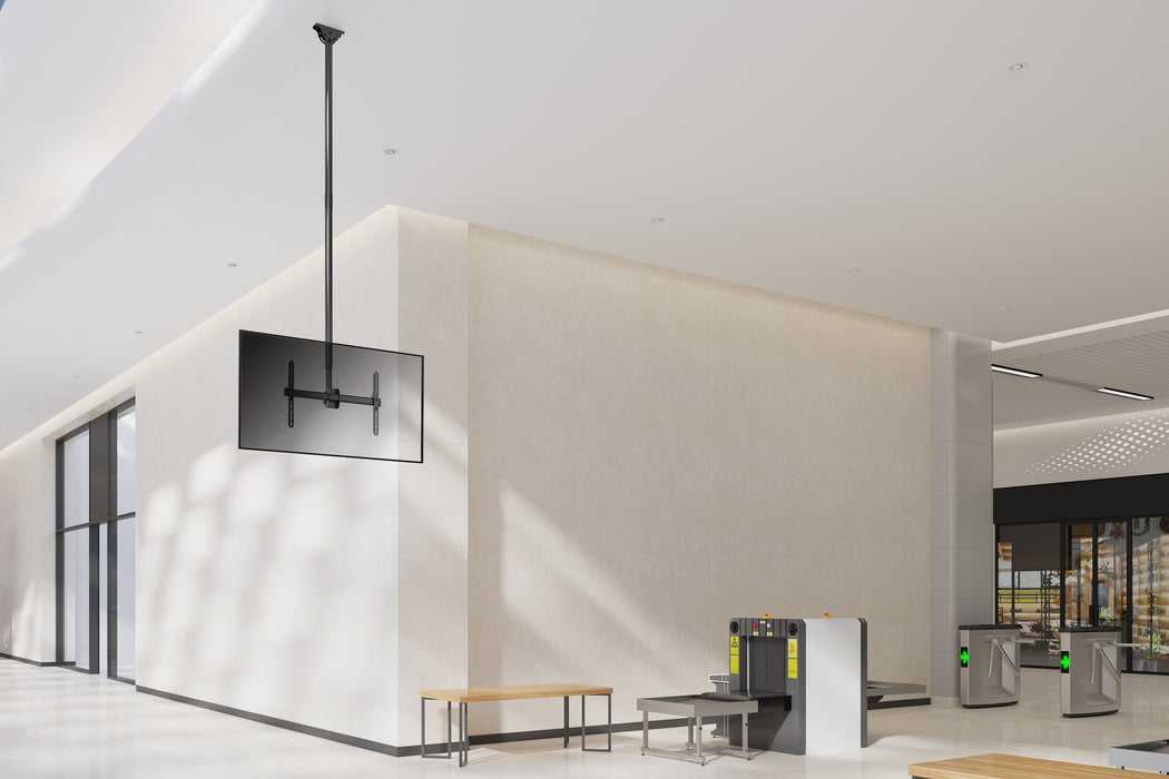 Met deze TV plafondbeugel kunnen displays zonder gereedschap kantelen en rond de paal draaien. Inclusief VESA-plaat voor vrijwel elke 37" - 70" LCD/OLED/QLED (etc.) TV of monitor tot 50kg. In hoogte verstelbaar voor een perfecte positionering van de TV en een kabelkanaal om kabels verborgen en georganiseerd te houden.