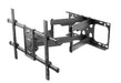Met deze televisiebeugel kunt u uw tv vlak tegen de wand hangen, vervolgens de televisie van de wand trekken (tot wel 63 centimeter) en vervolgens dus de televisie naar rechts of naar links draaien en kantelen naar boven of naar beneden.